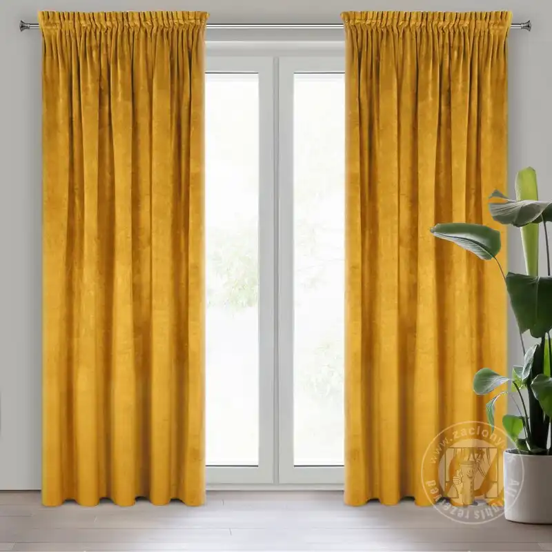 Pololesklý povrch a vysoká hmotnosť materiálu 300 g / m 2 zvýrazňujú hru svetla na povrchu závesu, ktorý dopĺňa farbu látky. Zamatové závesy sú kombináciou estetiky a funkčnosti.