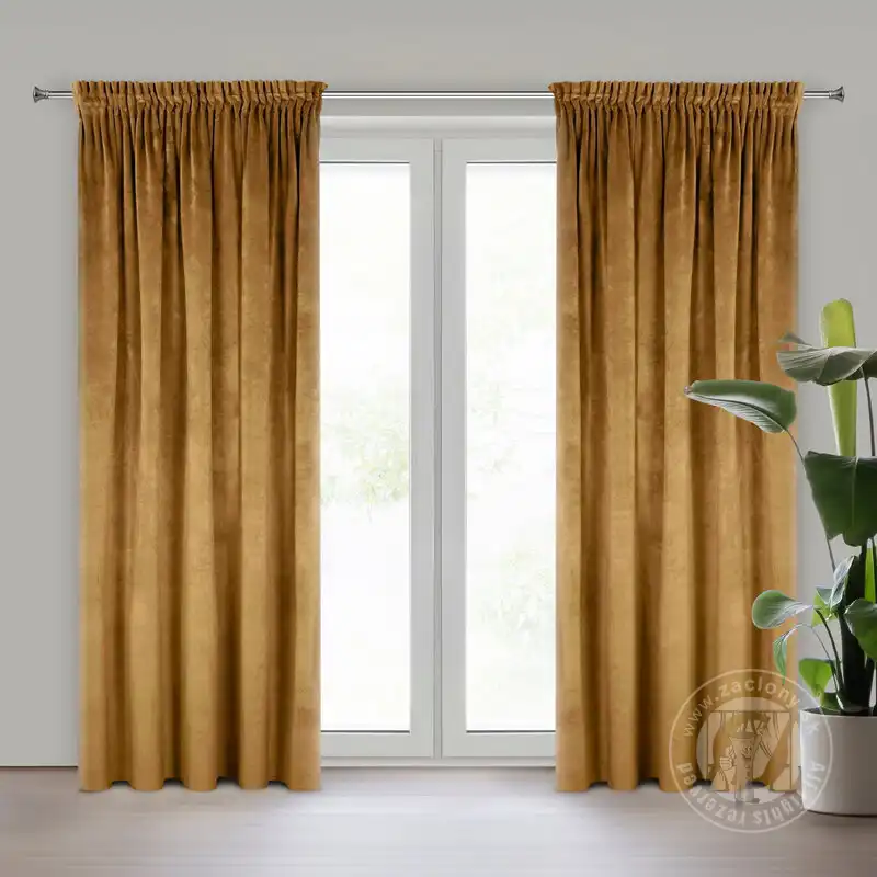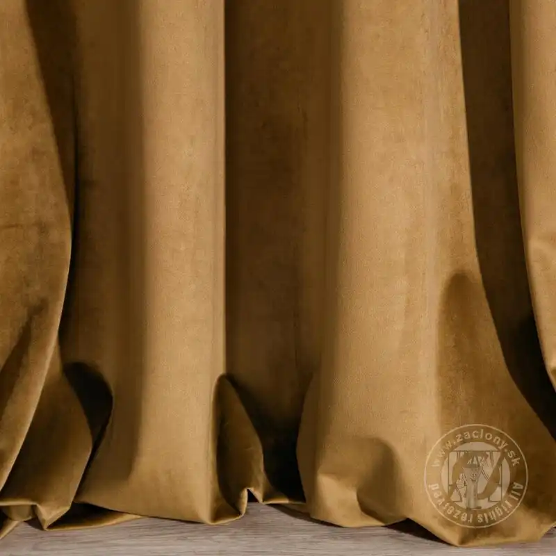 Pololesklý povrch a vysoká hmotnosť materiálu 300 g / m 2 zvýrazňujú hru svetla na povrchu závesu, ktorý dopĺňa farbu látky. Zamatové závesy sú kombináciou estetiky a funkčnosti.