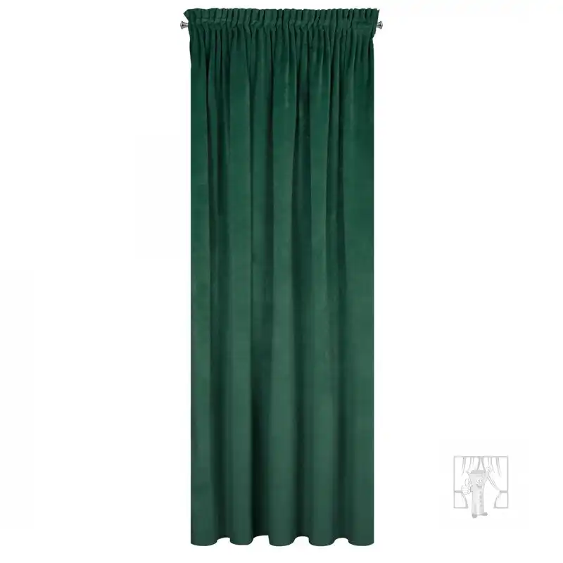 Pololesklý povrch a vysoká hmotnosť materiálu 300 g / m 2 zvýrazňujú hru svetla na povrchu závesu, ktorý dopĺňa farbu látky. Zamatové závesy sú kombináciou estetiky a funkčnosti.